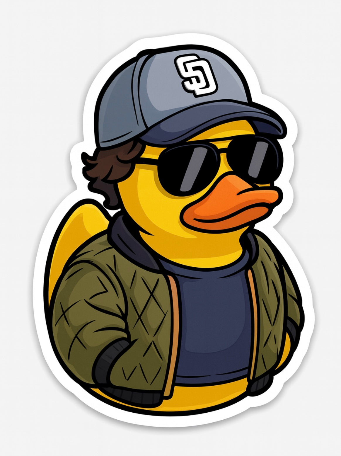 Glossy Max Denison rubber duck vinyl sticker. Stickers are waterproof, vibrant and a must have. Free shipping on all orders!