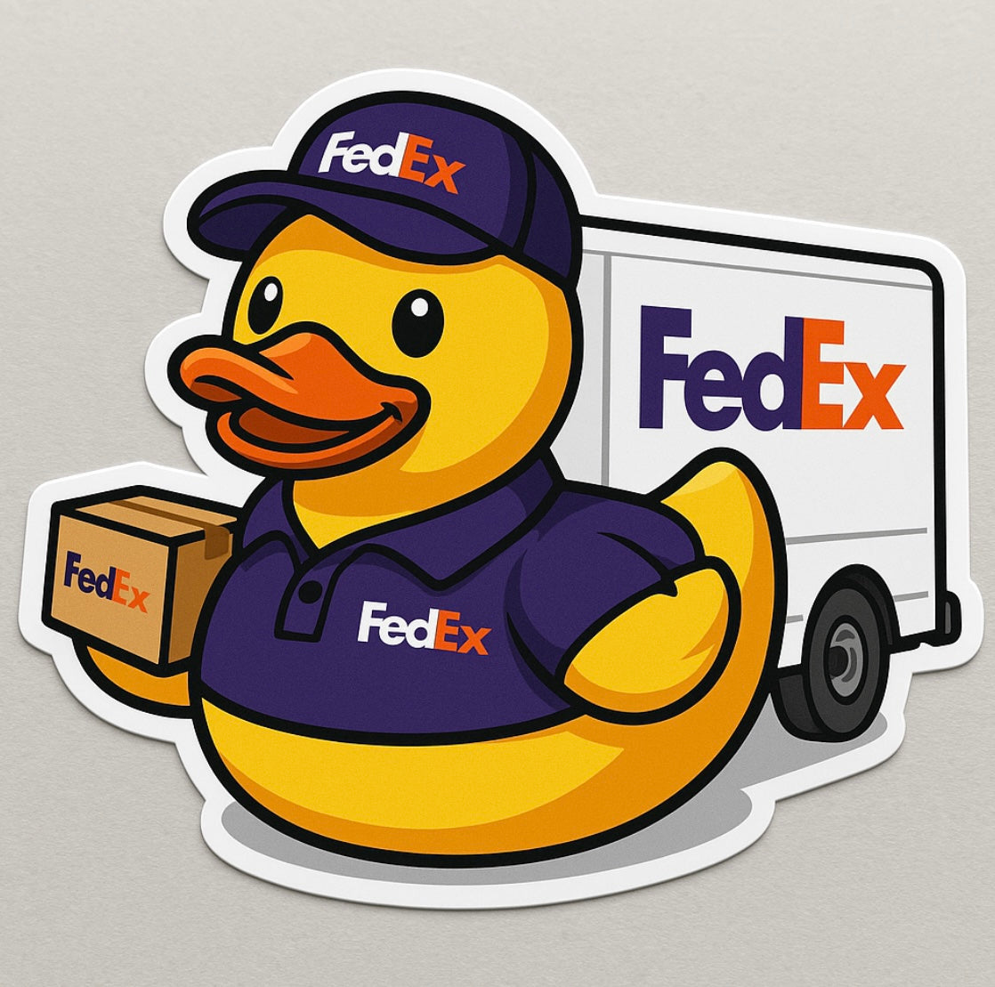 Glossy FedEx rubber duck vinyl sticker. Stickers are waterproof, vibrant and a must have.