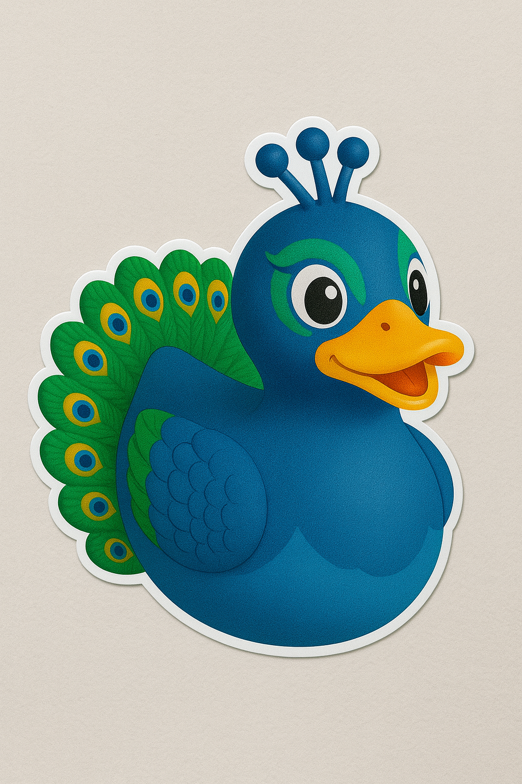 Peacock Rubber Duck Sticker by Reed’s Rubber Ducks